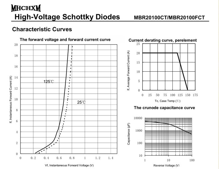 MHCHXM肖特基二极管MBR20100F 中文资料参数介绍: