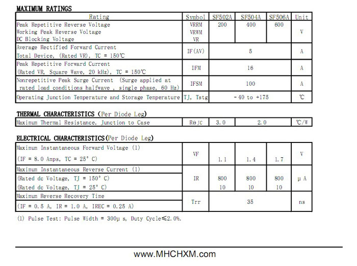 产品名称:SFF506A超快恢复二极管,MHCHXM品牌